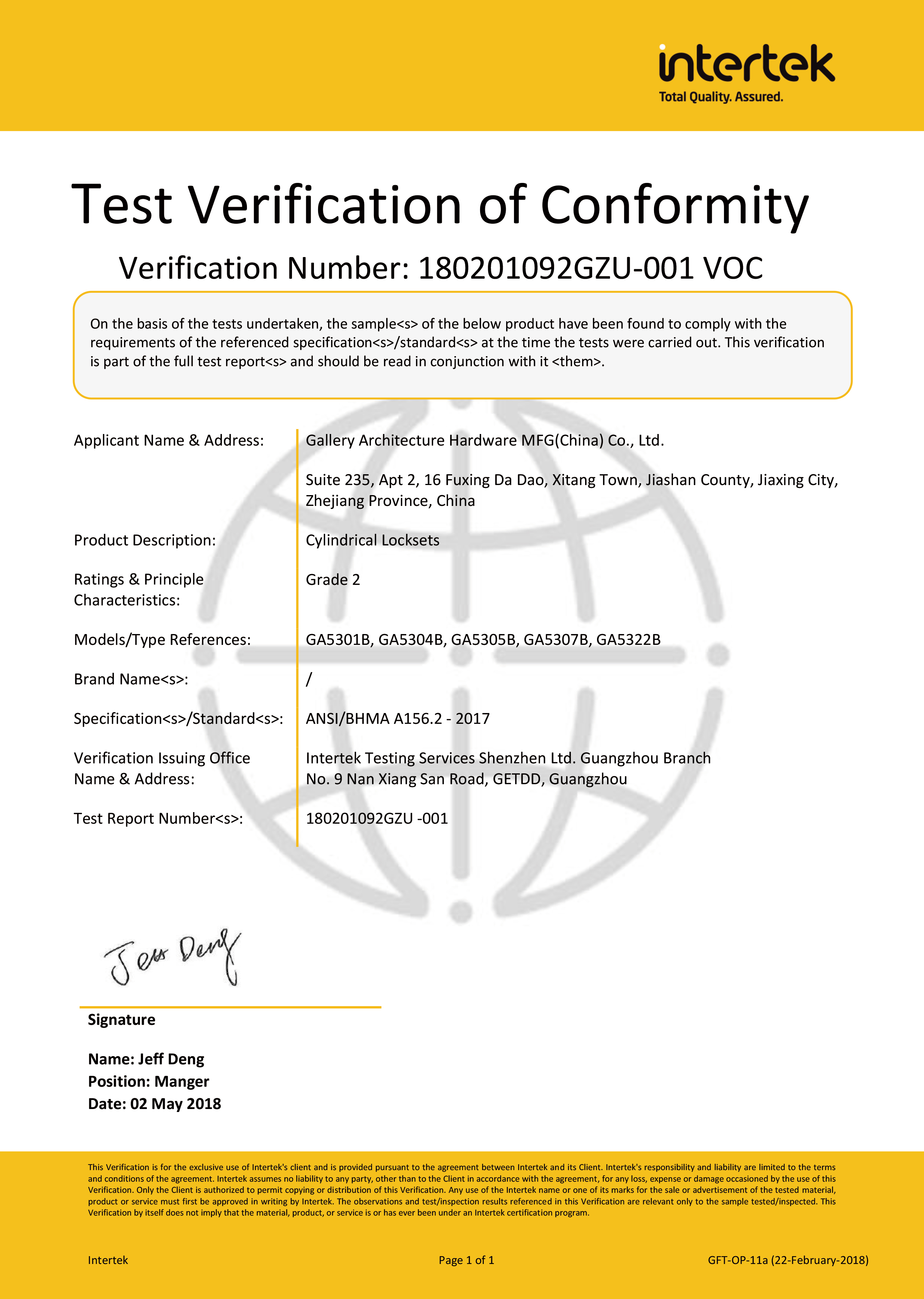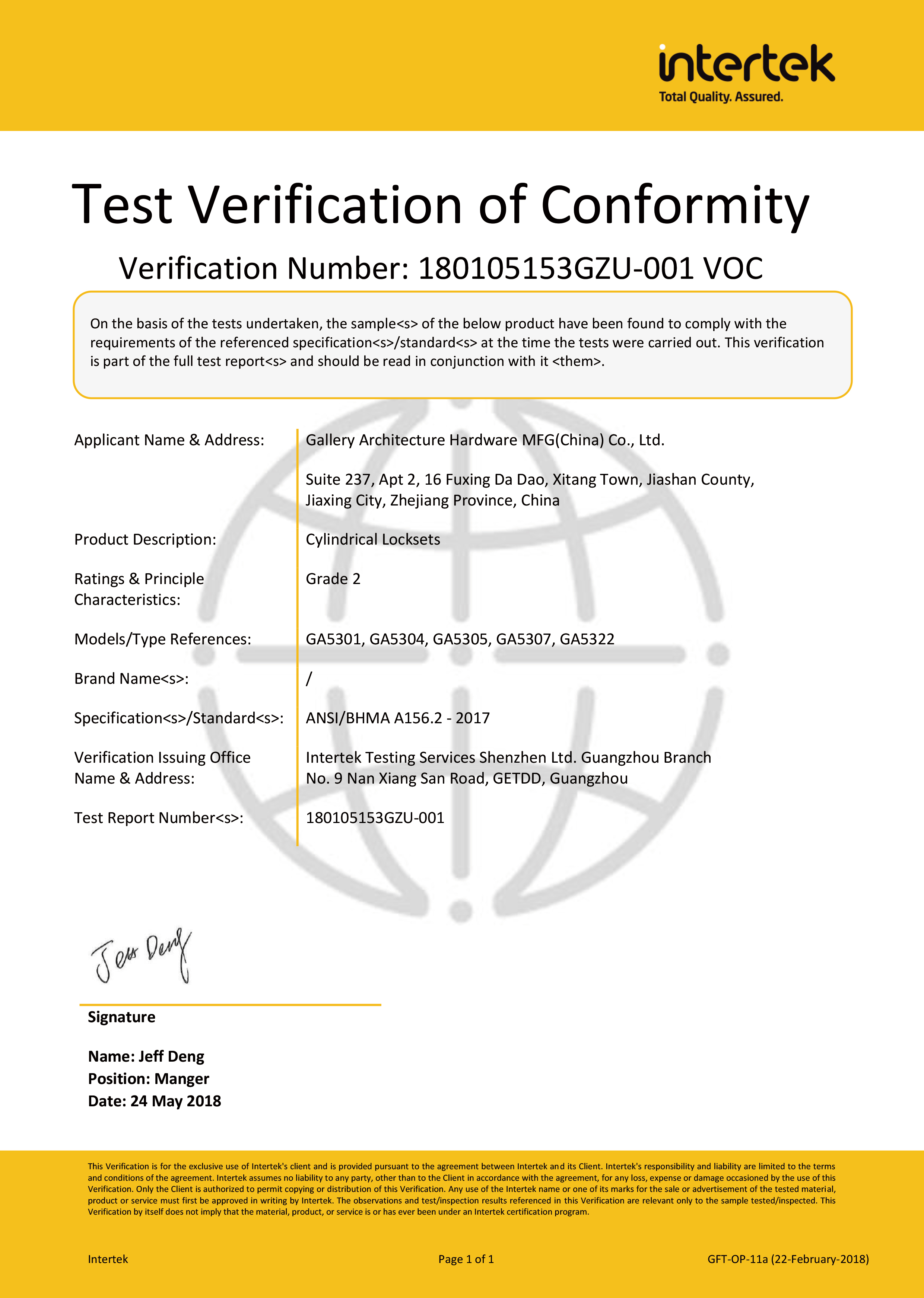 浙江堅(jiān)迪五金制造有限公司始建于 1995 年。自 2003 開始,公司致力于高標(biāo)準(zhǔn)商業(yè)鎖的研發(fā)工作,并于 2006 及 2007 年,8700 插芯鎖系列獲得美國國家標(biāo)準(zhǔn) ANSI A 156.13-2005 一級(jí)、ANSI A 156.2-2003 二級(jí)和美國 UL 10C3 小時(shí)防火測(cè)試認(rèn)證。自 1998 年以來,公司不斷提升產(chǎn)品和客戶服務(wù)品質(zhì),并獲得了 ISO 9001 的認(rèn)證。